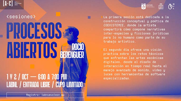 Estas sesiones permiten que el arte se convierta no solo en un objeto estético, sino en un espacio de encuentro, aprendizaje colectivo y transformación. En el programa [Arte + Comunidad] de LABNL, forman parte de la programación mensual experimental, en donde Rocío Berenguer ofrecerá una obra escénica sobre inteligencia artificial, lenguaje y ecología.